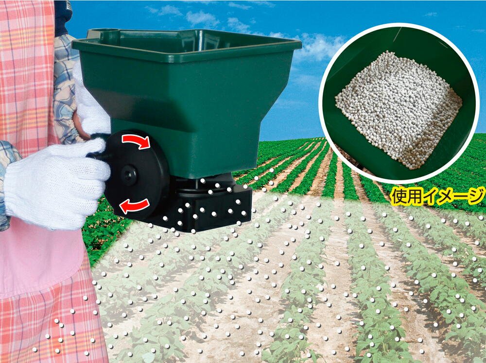 · Easy operation by turning the steering wheel, you can spray a wide range of particulate fertilizer / seed / snow removal agent without soiling your hands.