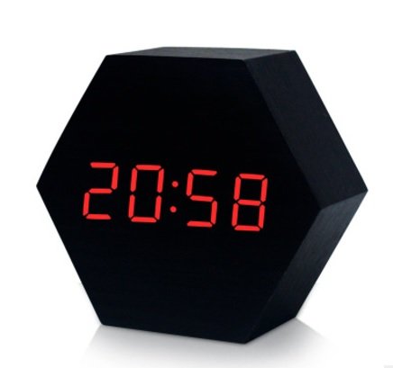 -. Title : Recca 木製置時計(六角形) オシャレ インテリア アラームクロック アナログ時計 ダLED 全3種類