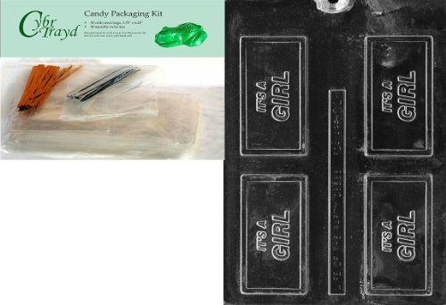 Cybrtrayd "It's a Girl" Business Card Chocolate Candy Mold with Packaging Bundle of 50 Cello Bags, 25 Gold/25 Silver Twist Ties and Chocolate Molding Instructions