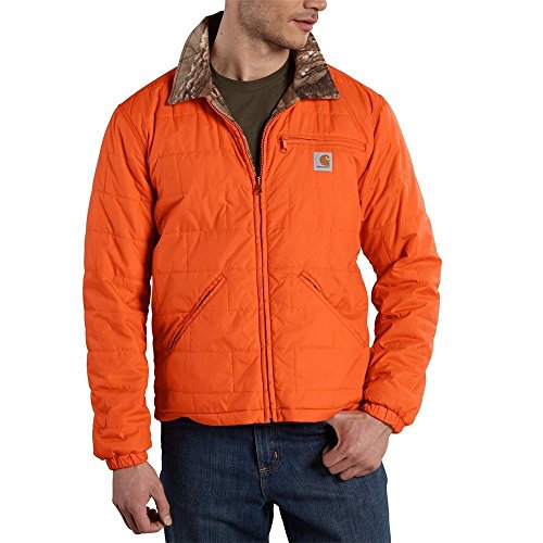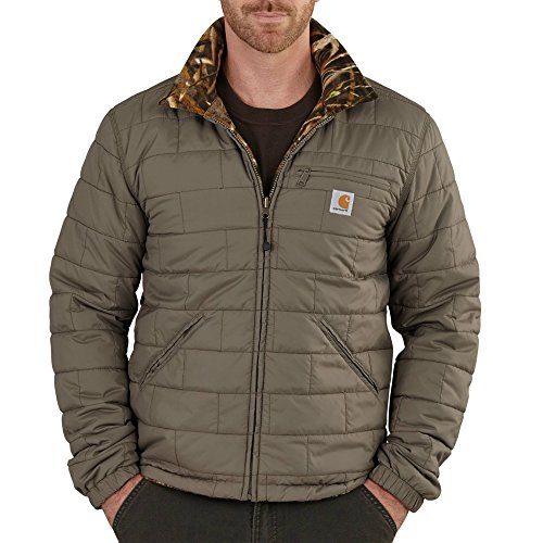 Studio : Carhartt Sportswear - Mens Publisher : Carhartt Sportswear - Mens Binding : Apparel Product Description Take it off, flip it and reverse it. Wear the woodsville jacket as camo or as a solid; blend in or stand out. Your jacket, your choice. Reversible garment. The nylon side is made from 1.75 ounce 100 percent nylon cord ur a quilted shell with the rain defender durable water-repellent finish and offers 60 gram poly insulation, a left chest pocket with zipper closure and lower pockets. The fleece side is made from 3.9 ounces, 100 percent poly microfleece with a camouflage pattern and has two chest pockets with snaps and flap closures, two large lower front pockets, a drop tail hem, elastic cuff and triple-stitched main seams for durability. 0
