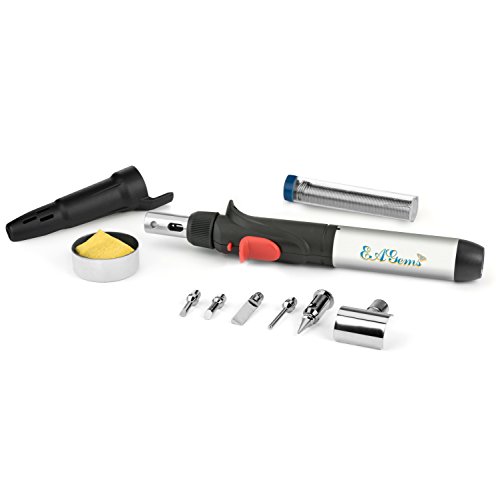 EAGems Butane Soldering Iron Torch, a Multipurpose Solder Station Kit with Welding and Hot Knife Tool Accessories - Set has 7 tips and is Self-Igniting with Adjustable Flame - Gas Not Included