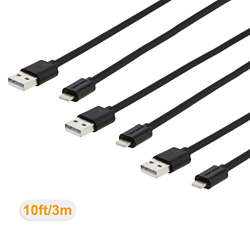 iPhone charger, (3-PACK) CableCreation Lightning to USB Data Sync Cable for iPhone 6S iPhone 6,iPhone 5/5S/5C, [Apple MFi Certified] Black, L=10ft/3m