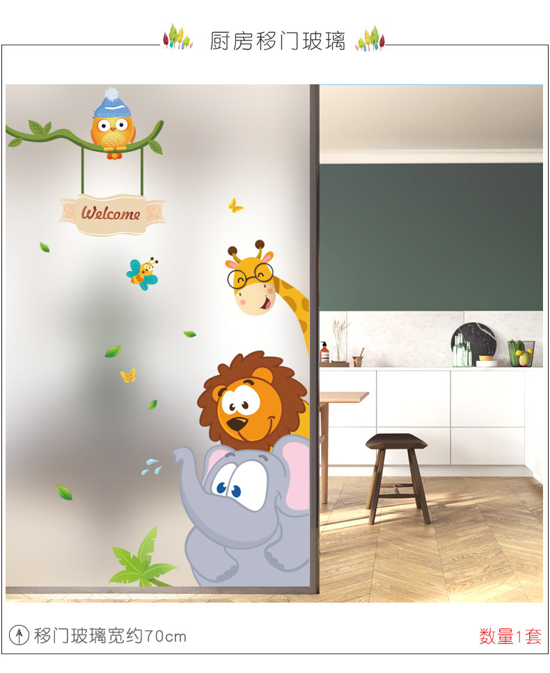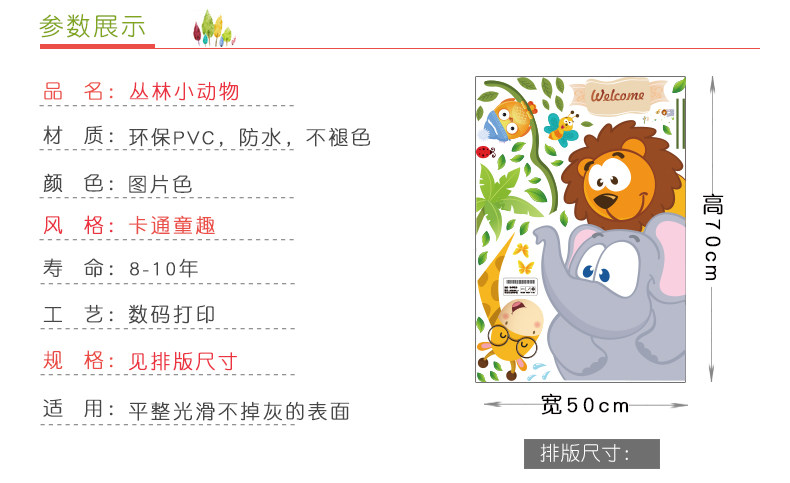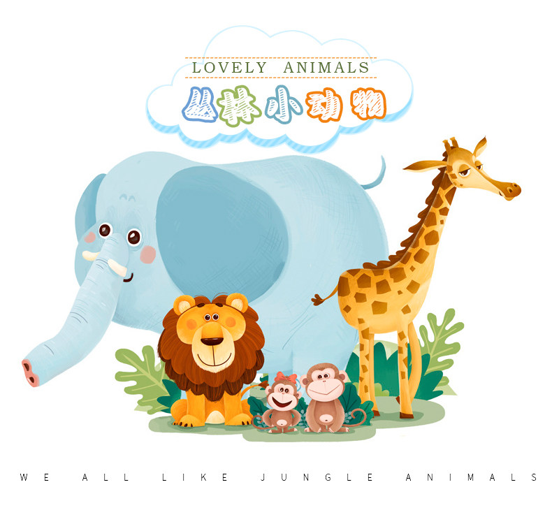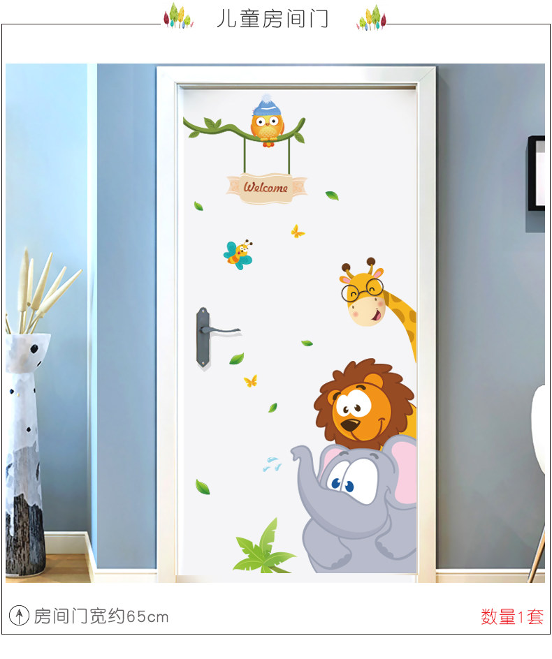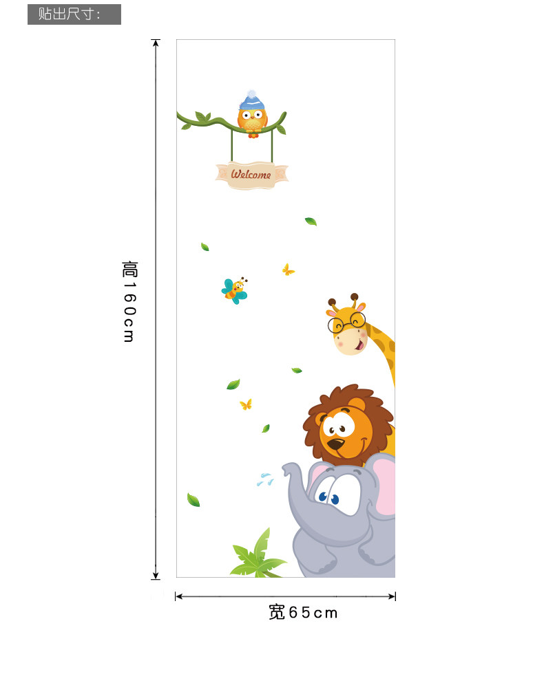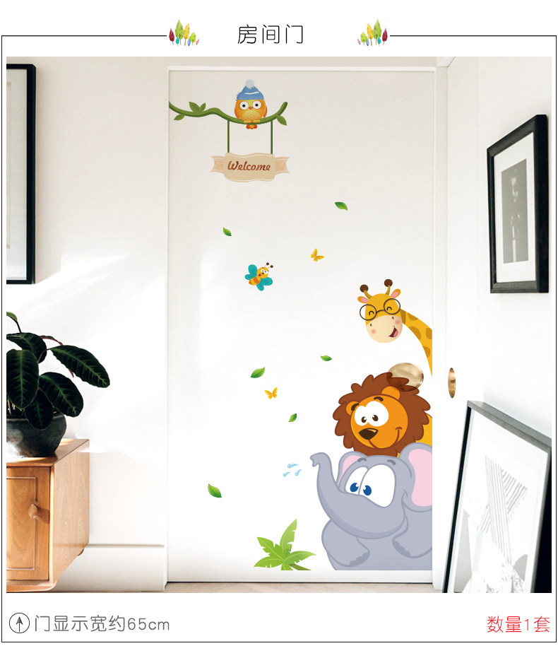 丛林小动物儿童房间卡通墙画墙贴纸 女孩卧室床头墙壁装饰贴画纸