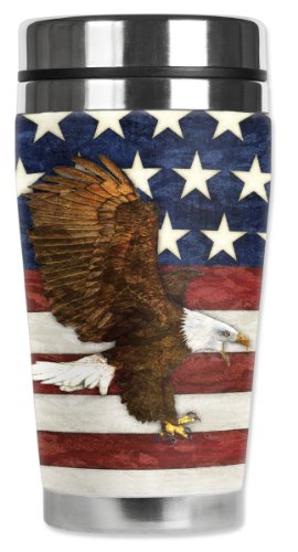 Mugzie American Eagle Travel Mug with Insulated Wetsuit Cover, 16 oz, Black