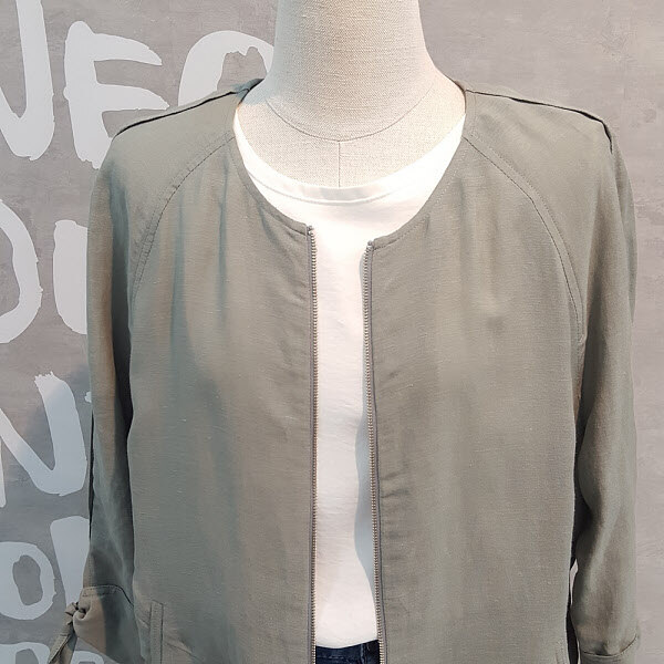 ★상품설명★ 심플한 노카라 라운드형의 집업형 린넨 점퍼입니다 소매부분 리본포인트가 고급스럽고 여성스러운 느낌을 살린 디자인입니다 가볍고 부드러운 터치감의 소재로 쾌적함을 느낄수 있는 시원한 린넨 소재입니다 자연스러운 루즈한 핏감과 적당한 기장감이 편하게 두루두루 입기 좋습니다 다양한 아이템과 함께 세련된 코디룩을 연출하여보세요