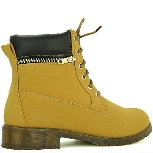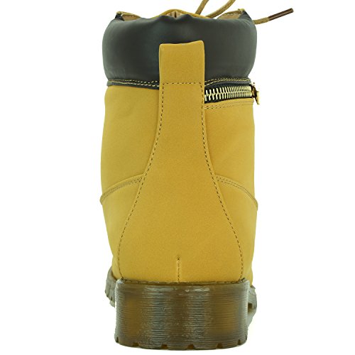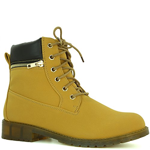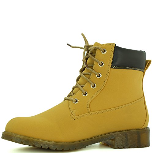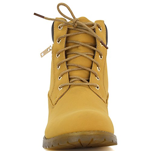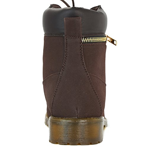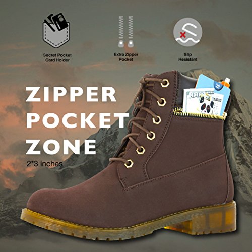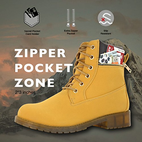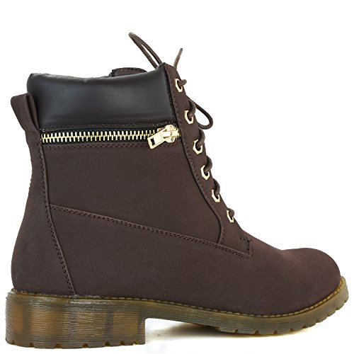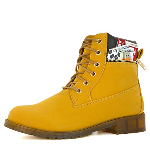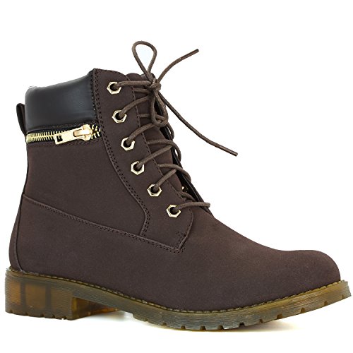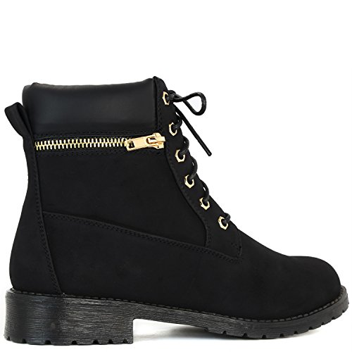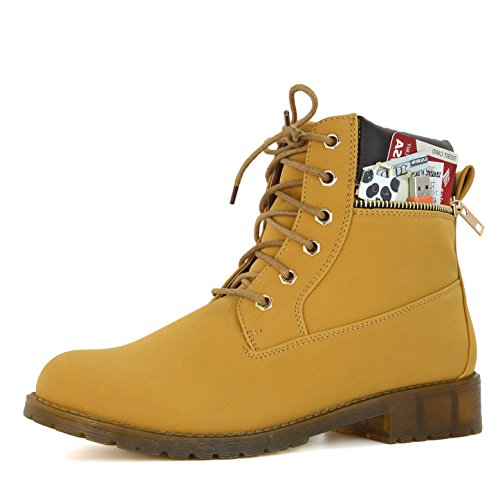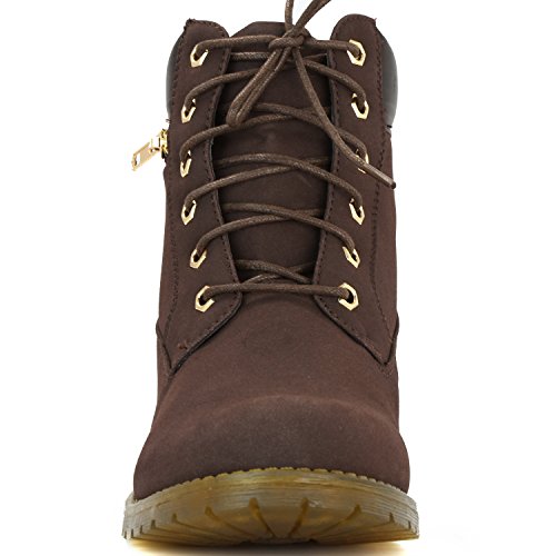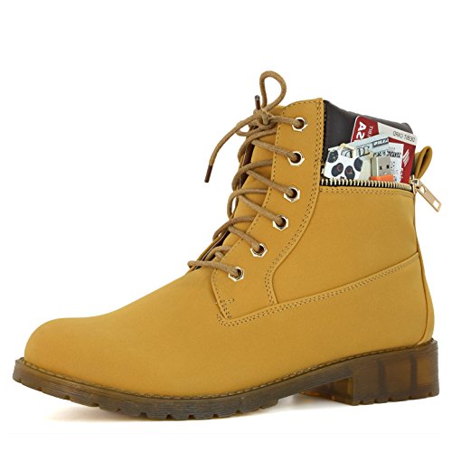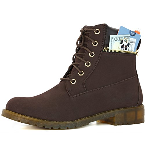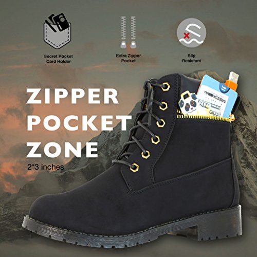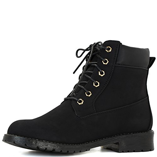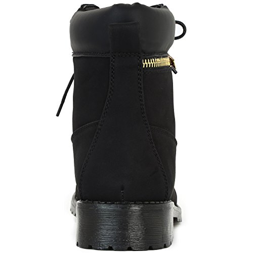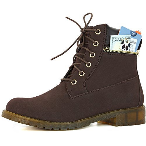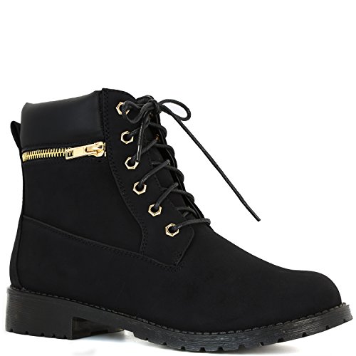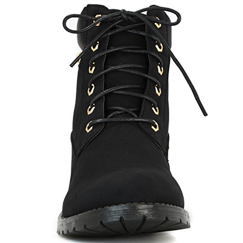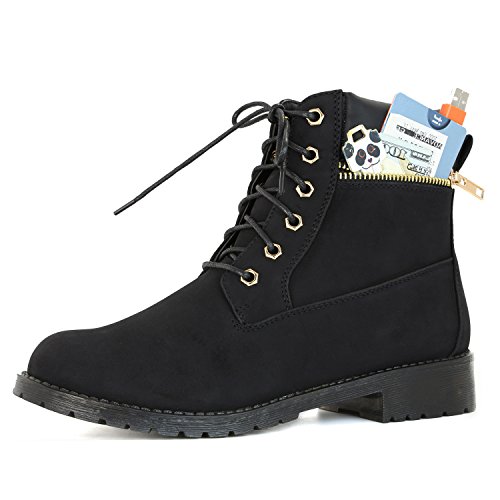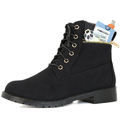 DailyShoes Women's Lace-Up Ankle Padded Collar Work Combat Side Zipper Pocket Ladies Booties