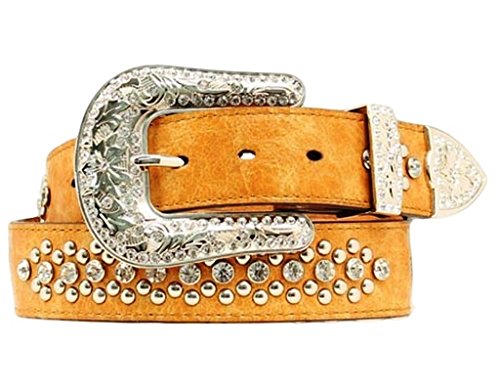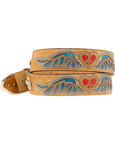 Studio : Nocona Publisher : Nocona Binding : Apparel Product Description Women admire Nocona belts Genuine brown leather belt features blue leather winged inlay with red leather heart inlay. Silver-tone studs and rhinestones accent belt. Fancy engraved silver-tone buckle, tip and keeper. 1 1/2" wide. Imported. 0