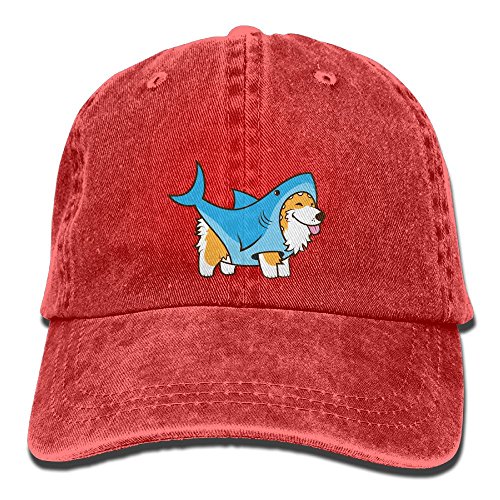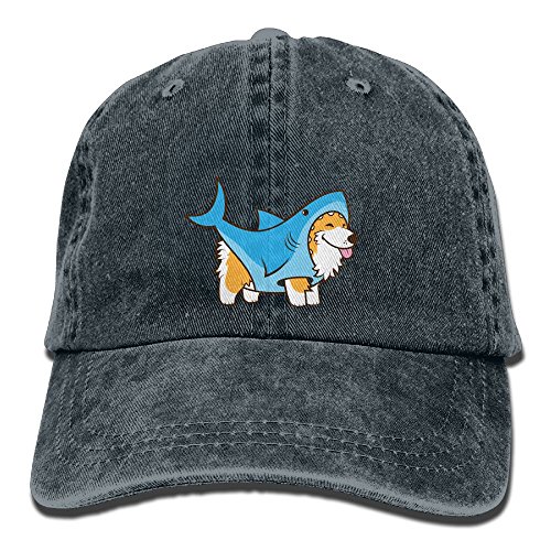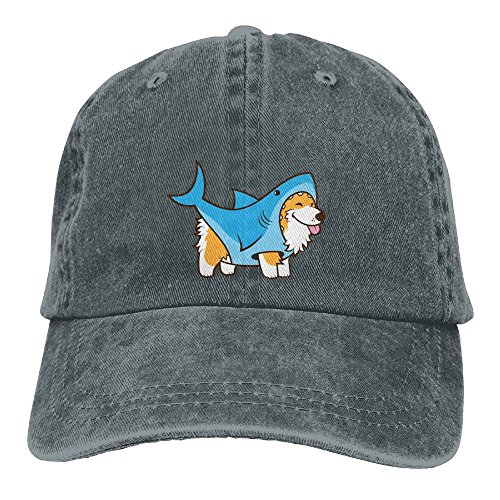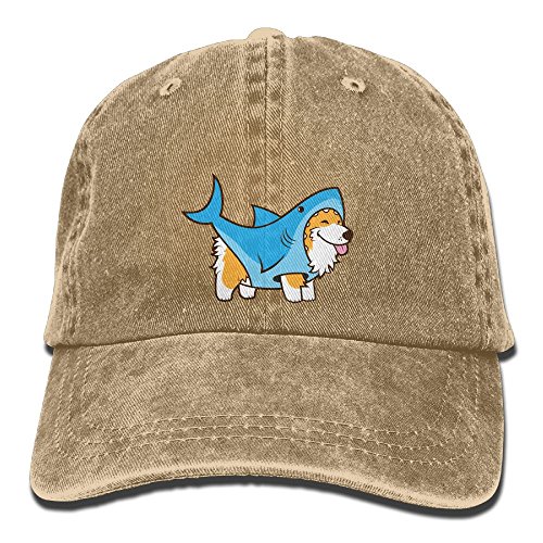 (Uanqunan)/Accessories/Hats/DIRECT FROM USA/Uanqunan Corgi In A Shark Unisex Cotton Denim Baseball Cap Adjustable Strap Low Profile Plain H...