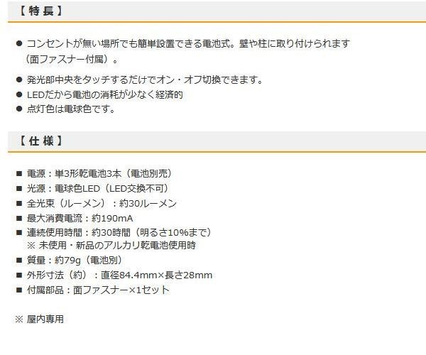コンセントが無い場所でも使えるLEDタッチスイッチライト。