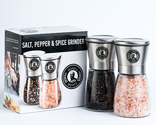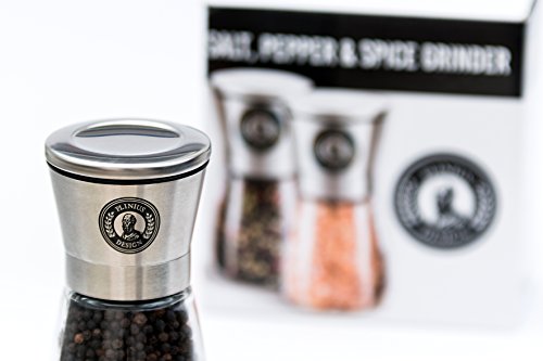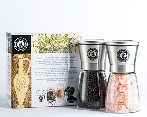 THE ORIGINAL PLINIUS DESIGN PREMIUM STAINLESS STEEL SALT & PEPPER GRINDER WITH ADJUSTABLE COARSENESS, SET OF 2