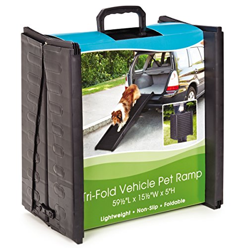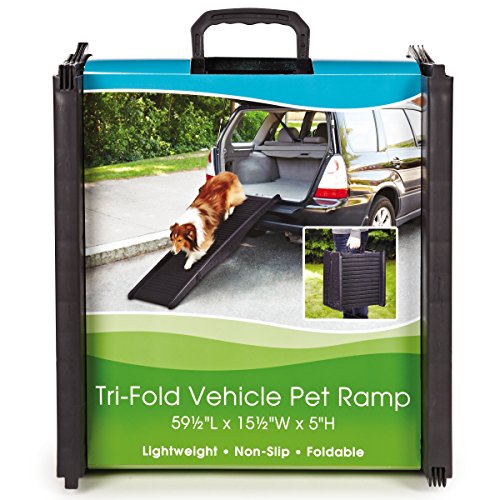 -. Binding : Misc. -. Brand : Guardian -. Color : Black -. EAN : 0721343987376 -. Feature : Tri-Fold Vehicle Pet Ramps hold pets up to 130 lbs / A great way for small, aging, or ailing pets to get in and out of cars / Features a carrying handle for easy transport and an anti-skid surface for improved traction / Folds down for easy storage, wipes clean with a damp cloth -. IsAutographed : 0 -. Label : PetEdge Dealer Services -. Manufacturer : PetEdge Dealer Services -. Model : ZW9873 17 -. MPN : ZW9873 17 -. NumberOfItems : 1 -. PackageQuantity : 1 -. PartNumber : ZW9873 17 -. ProductGroup : Pet Products -. ProductTypeName : PET_SUPPLIES -. Publisher : PetEdge Dealer Services -. Size : 59½"L x 15¾"W x 4"H -. Studio : PetEdge Dealer Services -. Title : Guardian Gear Tri Fold Vehicle Pet Ramps -. UPC : 721343987376