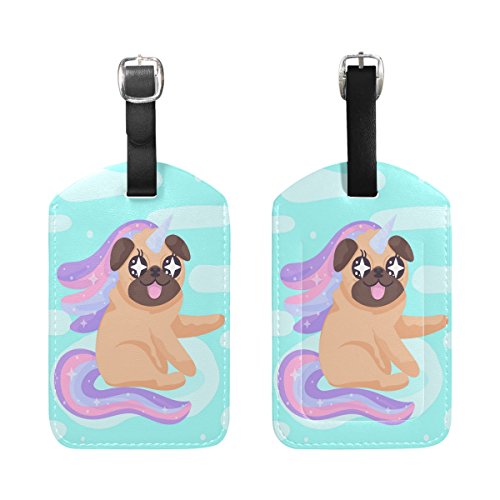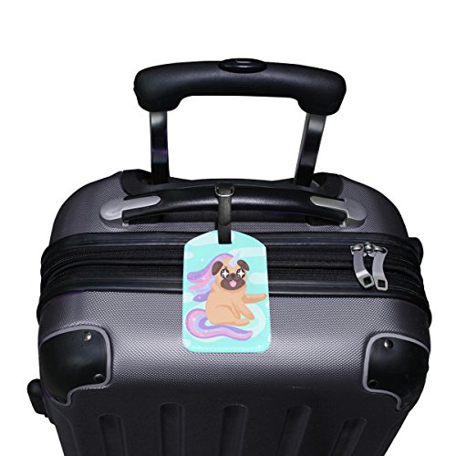 (Hokkien)/Accessories/Luggage, Bags Travel/DIRECT FROM USA/Blue Viper PU Leather Luggage Tags Personalized Cute Pug With Unicorn Style Pattern Suitcase La...