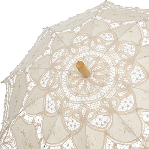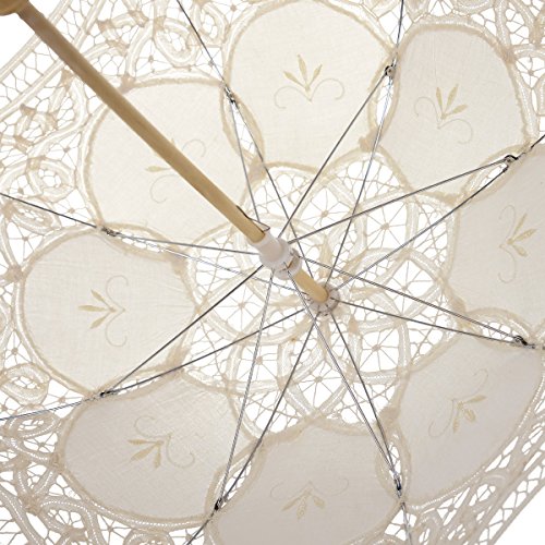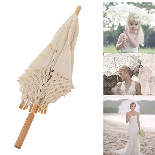 -. Brand : Remedios -. Department : womens -. Feature : Length:25.6"(65cm)when closed / Diameter:30"-31.5"(76-80cm)when open / Can't be used in raining days / With its lovingly crafted details, this umbrella goes with any outfit / For more styles&colors,please search ASIN:B018AOFQK6,B018ARY0AU,B018ARYD5M,B018ATD3F6 -. Model : LWPPUSHS160001-12B -. ProductGroup : Apparel -. ProductTypeName : LAGE -. Title : Remedios Ivory Bridal Wedding Cotton Lace Parasol Umbrella for Party Decoration