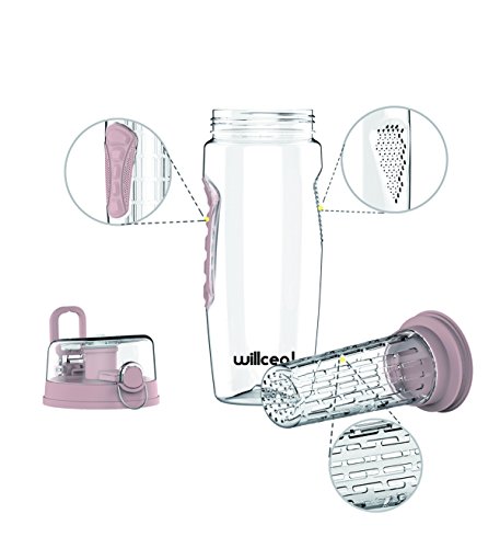 Willceal Fruit Infuser Water Bottle 32oz 1. Tritan Plastic- Willceal Infused Water Bottle is made from high quality Durable Eastman Tritan Food Grade Plastic- Recycable, ECO-Friendly, and Shatterproof. No odor and no plastic aftertaste. And more importantly it WILL NOT release chemicals that can affect your bodies' hormones like most plastic water bottles.