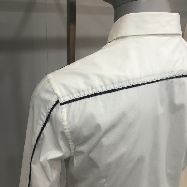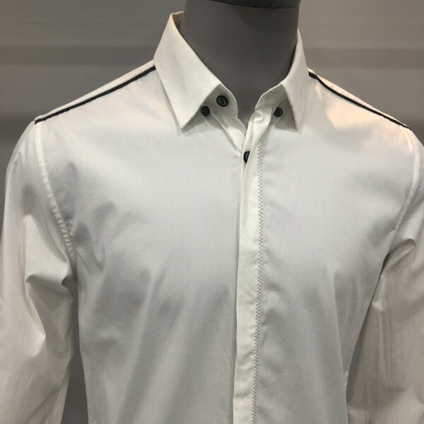 본 F/W 숄더 절개 배색 화이트 셔츠 입니다캐주얼한 룩 정장 룩 여러 방면으로코디 하기 너무나 좋은 아이템입니다