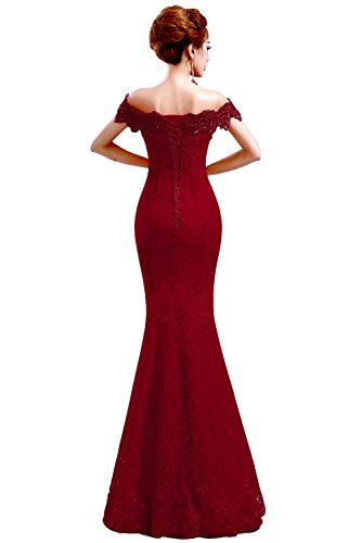 off shoulder mermaid lace burgundy Prom dressHigh quality Evening Prom Party Dress ,suit for evening,bridesmaid,wedding partyPlease note:1.this item is flat packed when post please iron under warm and low temperature to ease the crease2.Please allow slight deviation for the measurement data3.The real color of the item may be slightly different from the pictures shown on website caused by many factors such as brightness of your monitor and light brightness. If you can not sure your right size according our size shart, you can send us your measurement details as list. Bust:___ Waist:____ Hip:____ shoulder to shoulder:___Waist to floor:____ Height:____ shoes high:____(Inch) Welcome to our shop Babyonlinedress, there are more options waiting for you!Feature