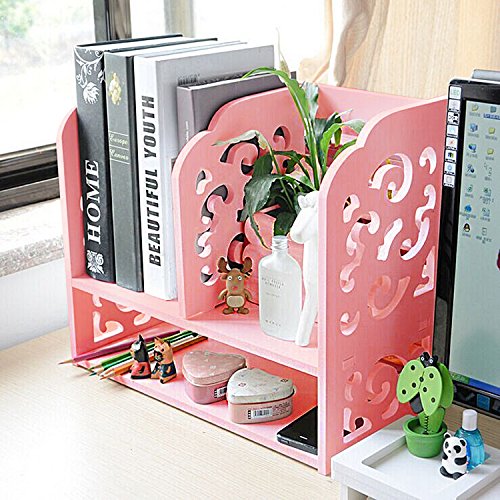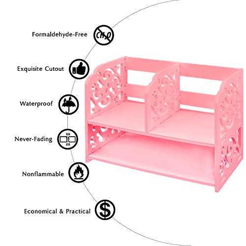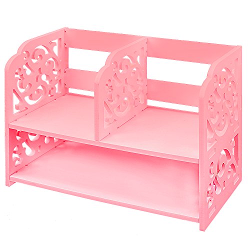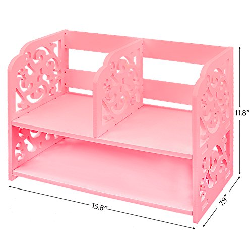 DL furniture - 3 Compartment Wood plastic composite Desk Organizer, Perfect For Book Shelf, Make Up Organizer, Cookie Rack | Pink