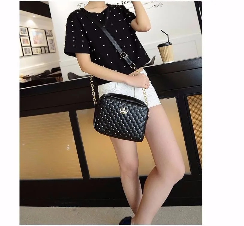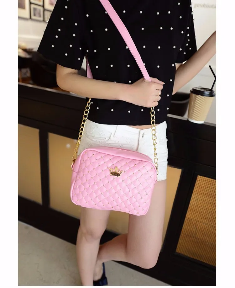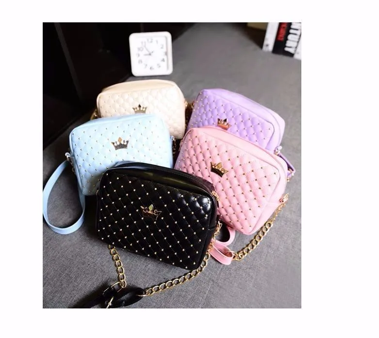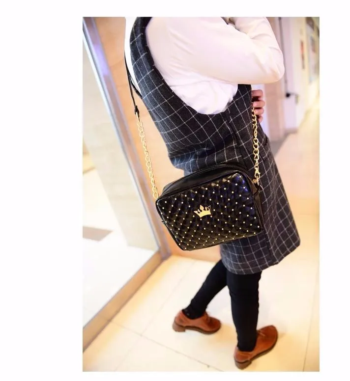 名前:swdf 2017新しいヨーロッパとアメリカのファッション斜め女性5色黒mdameチェーンショルダー潮リベット小さなショッピングバッグ