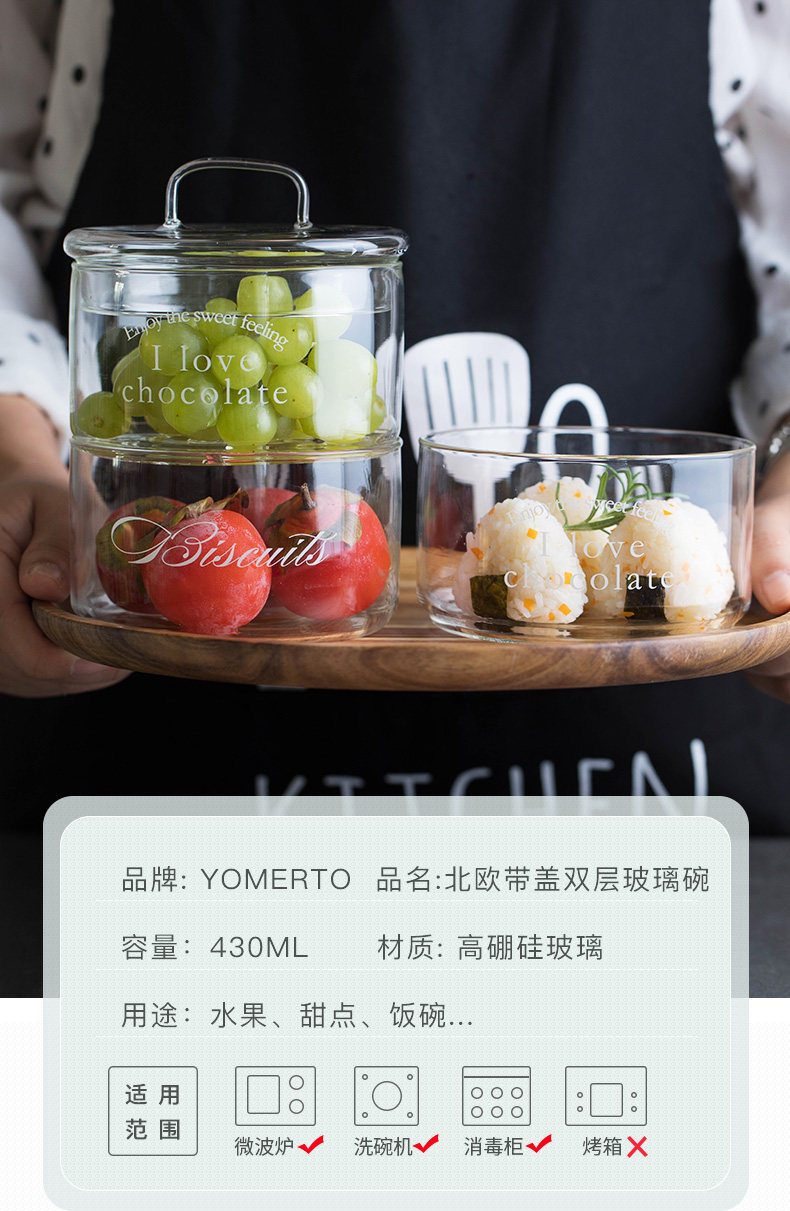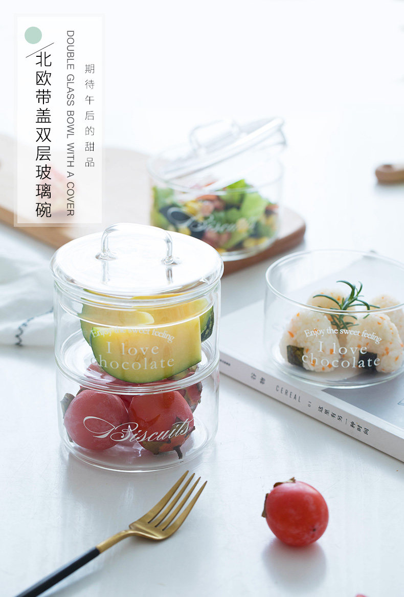 耐热双层玻璃碗可爱小碗宝宝辅食碗家用水果碗甜品沙拉碗