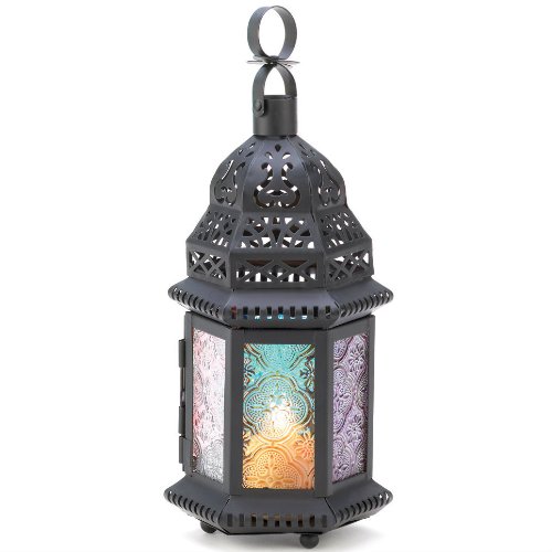 -. Title : Multi-Colored Glass Moroccan Candle Lantern - 10 inches
