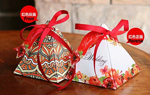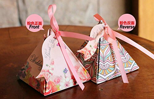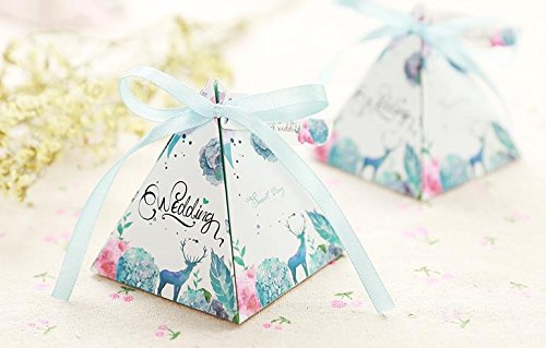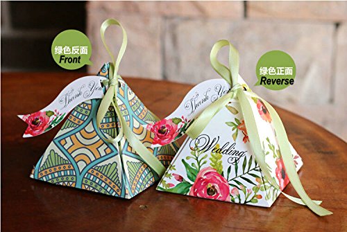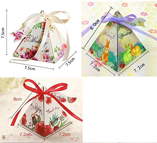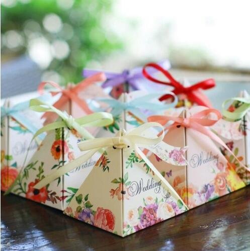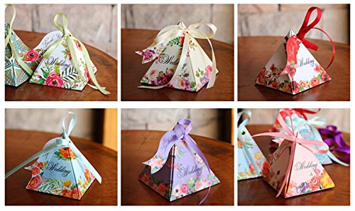 50pcs Floral Wedding Candy Gift Boxes with Ribbons for Party Favors and Decoration, Centerpieces Holiday Supplies (Mix design)