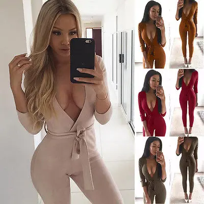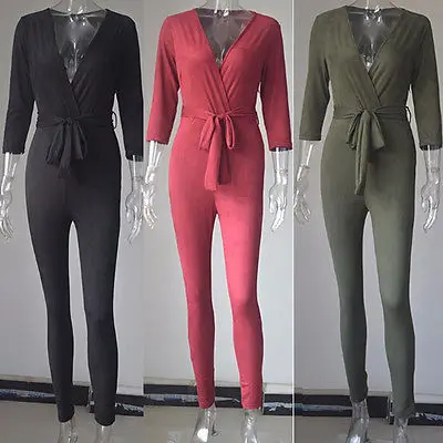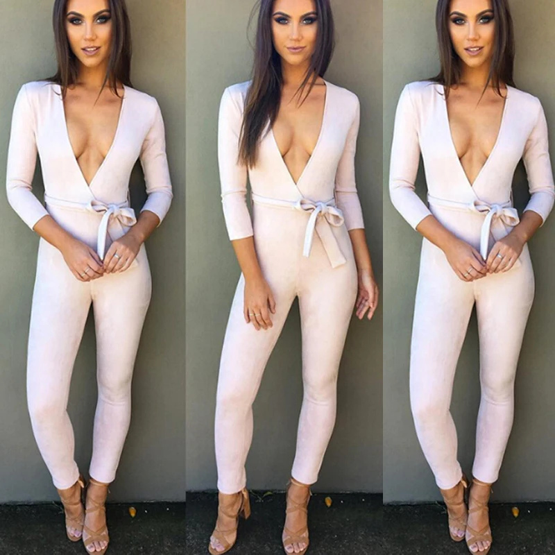 Model Number:Women Jumpsuit Romper Deep V Neck Sashes Overalls