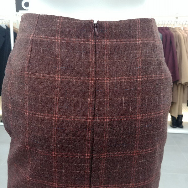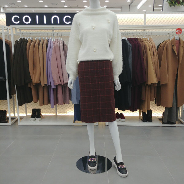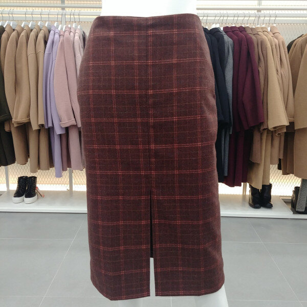 미디기장의 모직스커트.체크패턴에 앞트임의 트렌디한 스커트로 가을부터 봄까지 기본 하의로 활용도 높은 스커트입니다.