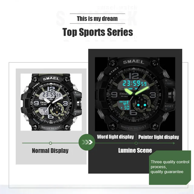 | [해외] SMAEL 스포츠 디지털 남성 시계 남성 석영 방수 Led 듀얼 디스플레이 손목 육군 남성 Relogio Masculino Hodinky 새로운 46 |