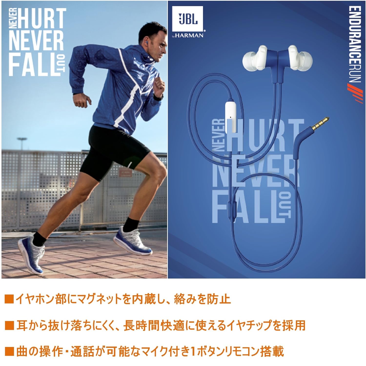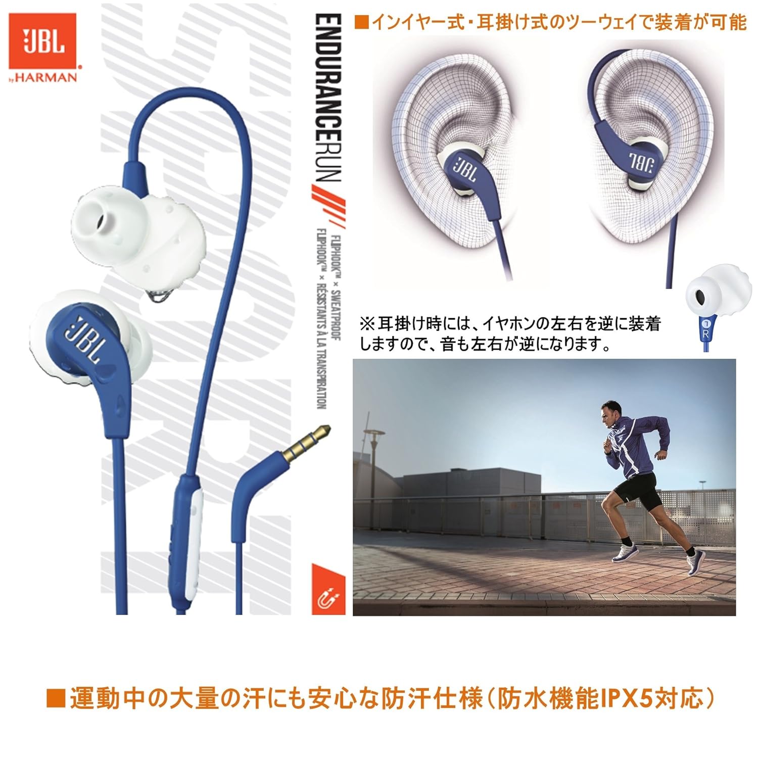 音場豊かな8.2mmダイナミックドライバーを搭載したインイヤーイヤホン 耳から抜け落ちにくく、長時間快適に使えるイヤチップを採用 運動中の大量の汗にも安心な防汗仕様(防水機能IPX5対応) イヤホン部にマグネットを内蔵し、絡みを防止 インイヤー式・耳掛け式のツ-ウェイで装着が可能 曲の操作・通話が可能なマイク付き1ボタンリモコン搭載 全4色の豊富なカラーバリエーションをご用意
