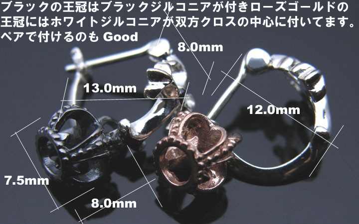 揺れ揺れ王冠ピアス登場!! SILVER 925製。クロスデザインを前面に、ディティールの美しいクロスセンターに径1.0mmのCZ。