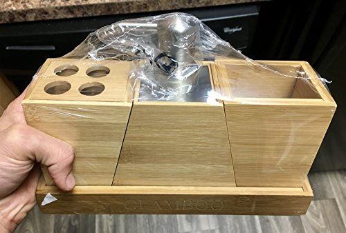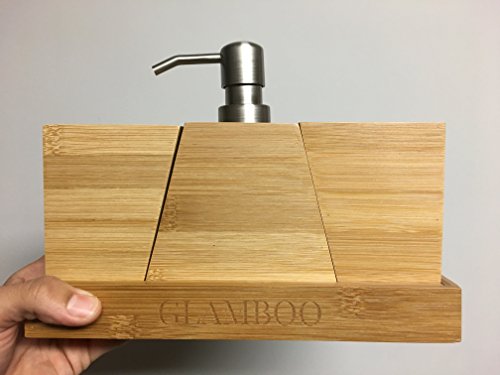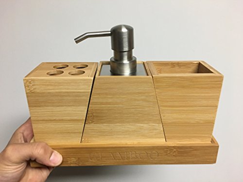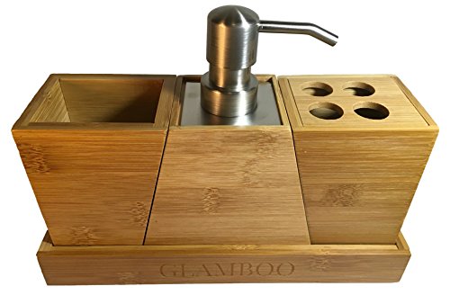 Glamboo Bathroom Vanity Set for Toiletry Accessories - Renewable Bamboo Wood (4 Pieces: Soap Dispenser, Toothbrush Holder, Cup, Tray)