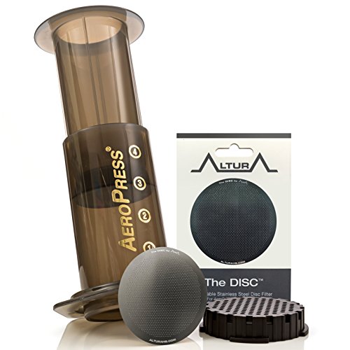 The DISC: Premium Filter for AeroPress Coffee Makers by ALTURA + eBOOK with Recipes, Tips, and More – Stainless Steel, Washable & Reusable.