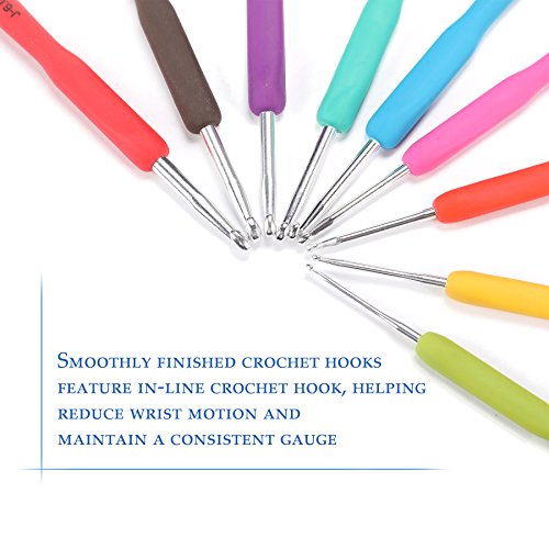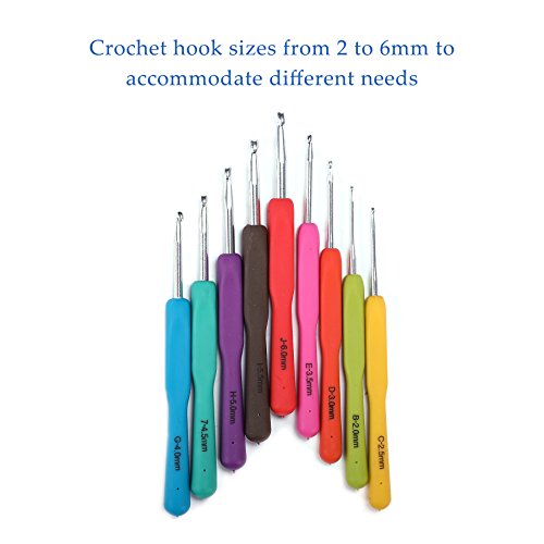 - 👯【SOFT RUBBER HANDLES】Designed with soft rubber handles, our lightweight crochet needles can contour your fingers and reduces or eliminates hand, wrist or finger pain, ideal for people with arthritis