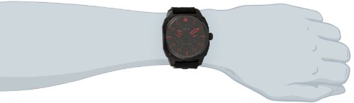 -. Feature : Highlighting the advancements in flight technology, this timepiece brings you the feel and look of the cockpit / Japan movement with date and day indicator / Black dial with red index, day and date subdials, mineral crystal lens / Genuine leather strap, ion plated black plated stainless steel case, buckle and rivets / Water resistant to 165 feet (50 M): suitable for swimming and showering