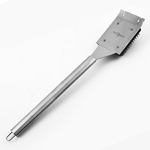 CookIdea Stainless steel long handle Grill Cleaning Brush, with extra changeable head, durable quality, wire grill brush