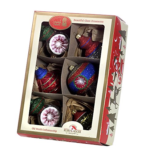 Kurt Adler 3-4" Early Years Glass Reflector Ball Ornaments, 6 Pieces
