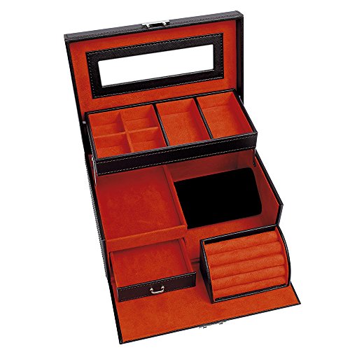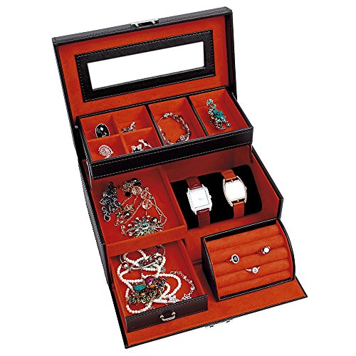4Queens Brown PU Jewelry Box Jewelry Case with Mirror and Lock