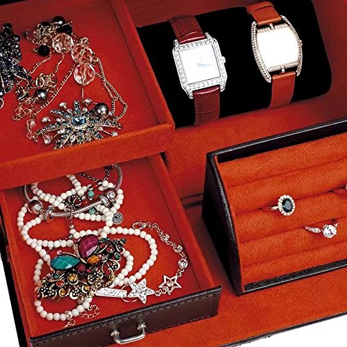 - Classic Design -- Strong Handle on the top makes the jewelry case portable, and allows you to take it wherever you want, It comes with lock and key which greatly improve the safety and tidy of your belongings