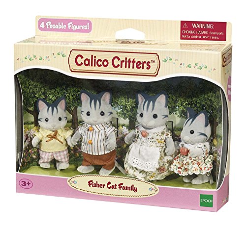 -. Binding : Toy -. Brand : Calico Critters -. Department : Calico Criters -. EAN : 0885891092477 -. Feature : Fun and educational / Performance and quality tested / Great fun for children of all ages / Mother Fisher can often be seen tending to her luscious garden, while Fatherr is known for his house building skills. / Includes Father Schroeder, Mother Isabel, Brother Linus and Sister Lauren who are all gray / Calico Critters are always ready to play! / Collect them all! / Hours of creative, imaginative play time! -. IsAdultProduct : 0 -. IsAutographed : 0 -. IsMemorabilia : 0 -. Label : International Playthings -. Manufacturer : International Playthings -. Model : CC1640 -. MPN : CC1640 -. PackageQuantity : 1 -. PartNumber : CC1640 -. ProductGroup : Toy -. ProductTypeName : TOYS_AND_GAMES -. Publisher : International Playthings -. ReleaseDate : 2007-02-01 -. SKU : P4-AVHD-CCLA -. Studio : International Playthings -. Title : Calico Critters Fisher Cat Family -. UPC : 781624334954