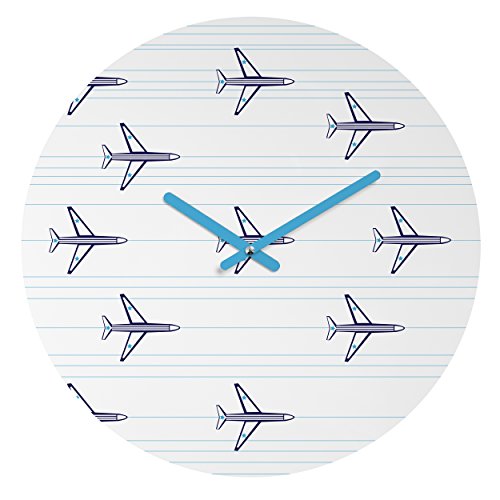 Deny Designs Vy La, Airplanes and Stripes , Round Clock, Round, 12"