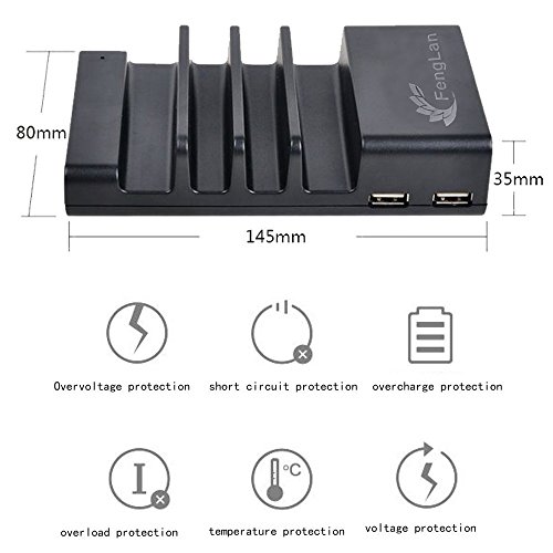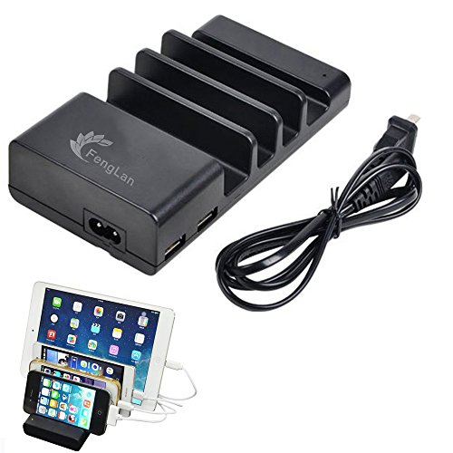 -. Feature : US Seller, Good quanlity Best P.R.Ice and Service / 1 Station for All Devices: It comes with smart IC, 4 Slots and 4 USB ports for directly charging multiple devices. It can steadily hold all your devices. It's not only a Stand, Dock or Station, but a combo of all, saving you from additional charging adapter or power strip. / 4 Powered USB Ports - Simply connect your own charging cable and this powerful charging station will charge up to 4 devices. With smart IC installed, each port intelligently identifies your device and seeks a maximize its charge speed. / Steady and Safty: CE, FCC, ROHS, CUL, UL, SAA, ERP Certificates. built-in high quality PVC Copper wire,Premium Circuitry with over-voltage, over-current and short circuit protection. / Input: AC110-240V 50-60HZ; Output: 5V 2.1A*1 + 5V 1A*3, Power cable length: 120cm /47inch