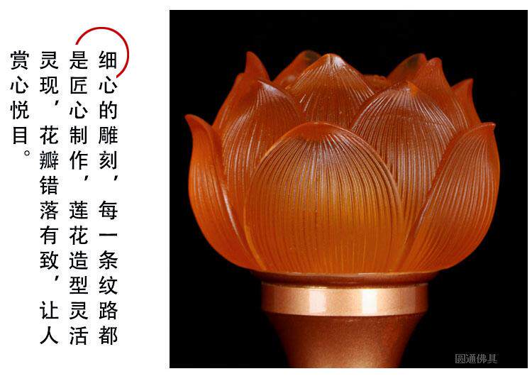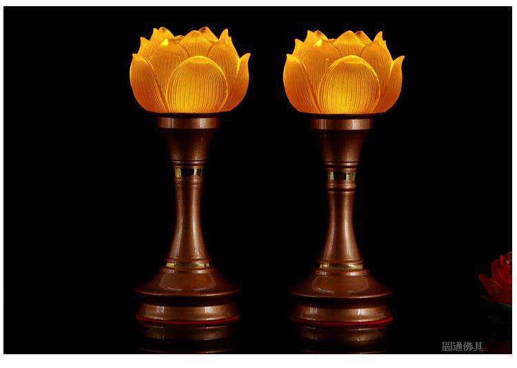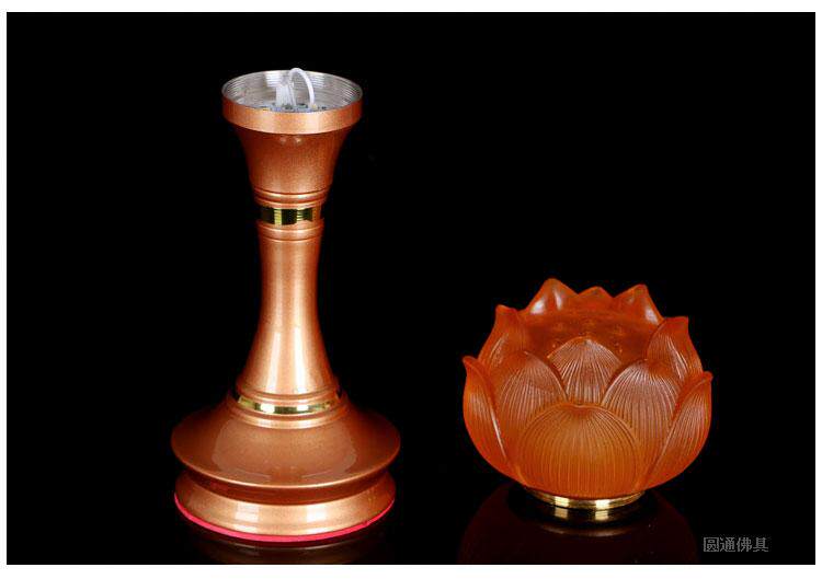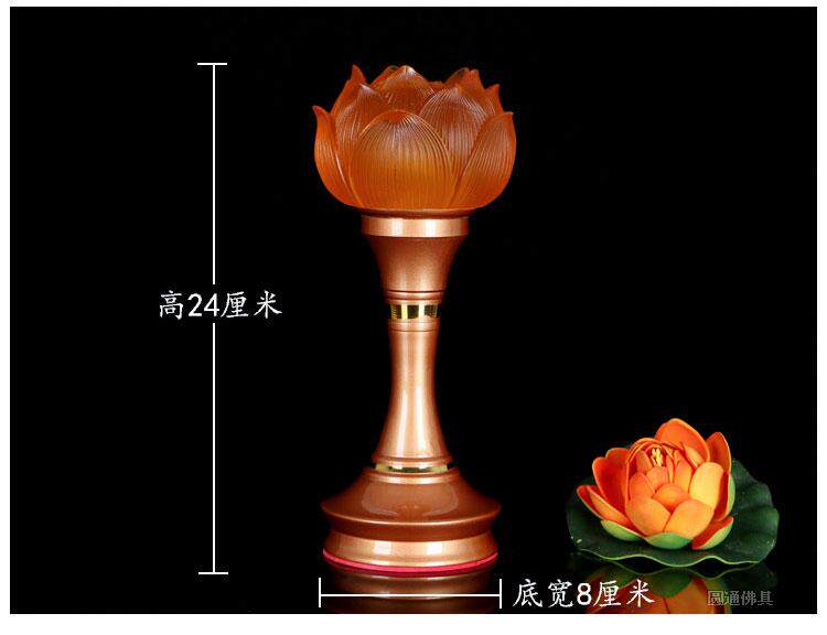 圆通佛具供灯佛灯led长明灯插电纯铜琉璃莲花灯佛堂供佛佛教用品