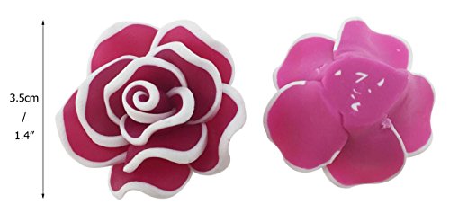 Every flower is handmde and has 3 layers,more plump and three- dimensional.Diameter:3.5cm/1.4".Height:1.5cm/0.6"