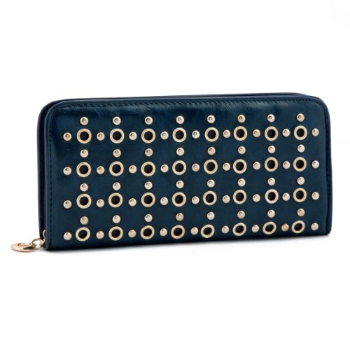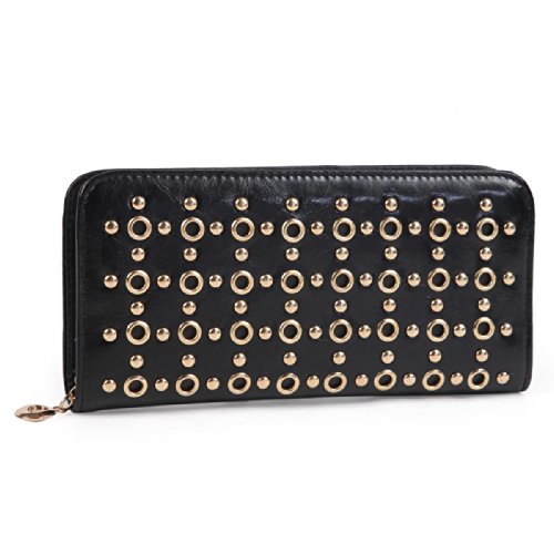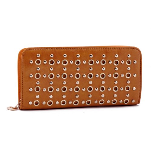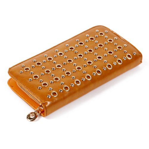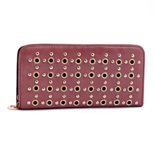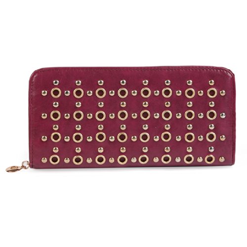 Damara Vintage Smooth Leather Large Stud Womens Clutch Wallet,Jujube Red