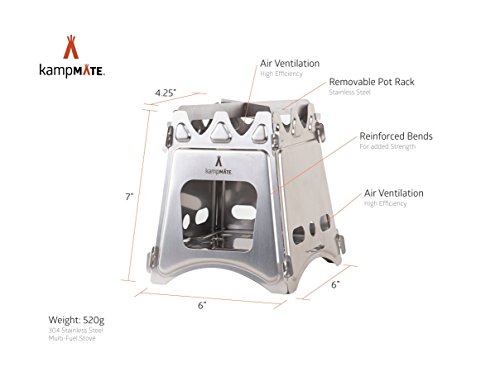 WoodFlame Ultra Lightweight Portable Wood Burning Camping Stove, Backpacking Stove, Stainless Steel with Nylon Carry Case - Perfect for Survival Packs & Emergency Preparedness by kampMATE