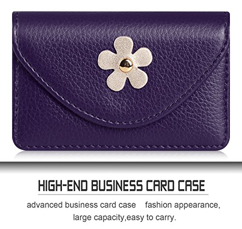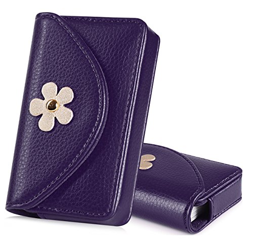 FYY 100% Handmade Premium Leather Business Name Card Case Universal Card Holder with Magnetic Closure (Hold 30 pics of cards) Purple