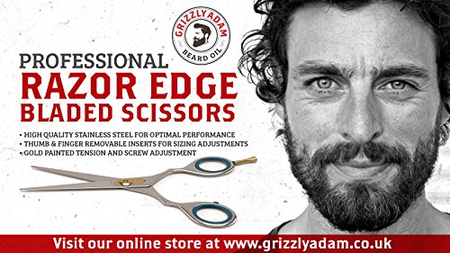 6.5-Inch Professional Hair and Beard Scissors - Razor Edge Hair Cutting Scissors with Adjustable Tension and Finger Inserts, Sharp Blades for Easy Hairstyling and Badass Beard Care