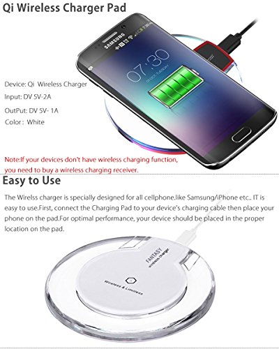 -. Feature : ✅iPhone X, 8, 8 Plus Wireless Charger, Qi Wireless Charging Pad for Samsung Galaxy S8, S8 Plus, S7, S6, S6 Edge, LG G6 Note 5, Nexus 6, Nexus 5 / ✅LED light displays charging status and is designed with an energy efficient idle mode / ✅RETAIL PACKAGE INCLUDES: 1 x Q8 fast wireless charger, 1 x Micro USB Power Cable (NOT including the AC adapter), 1 x User Manual, 30 Day Money Back Guarantee / ✅Freedom from cords - charge your device without cables or a USB interface / ✅Durable, lightweight, and compact with a sleek design