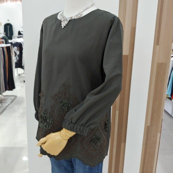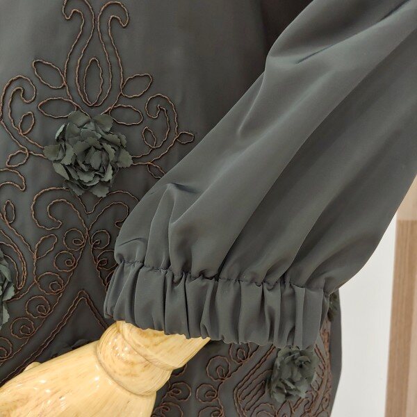 소매의 밴드 적용으로 귀여움과 동시에 플라워 트리밍이 여성스러우면서도 페미닌한 무드를 함게 드립니다