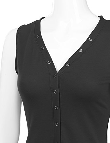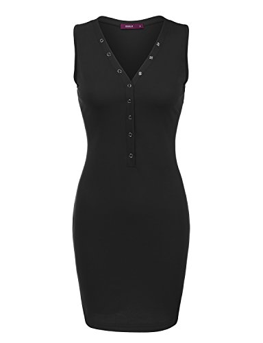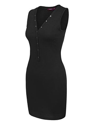-. Feature : Machine Washable (Recommended Hand Wash) / Doublju Women Sleeveless Button Henleyneck Casual Basic Mini Dress / Please check sizing info to ensure your size prior to ordering